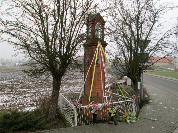 W Wojnowicach, przy głównej drodze prowadzącej z Leszna w kierunku Śremu, po lewej stronie zauważymy murowaną z czerwonej cegły kapliczkę z figurą Matki Boskiej. Figura znajduje się w górnej części, za oszkloną szybą. W dolnej części umieszczono biały napis na zielonym tle będący początkiem modlitwy skierowanej do Matki Boskiej, który brzmi: „Pod Twoją obronę”. Całość wieńczy metalowy krzyż. Kapliczka ogrodzona jest ozdobnym białym płotem.
