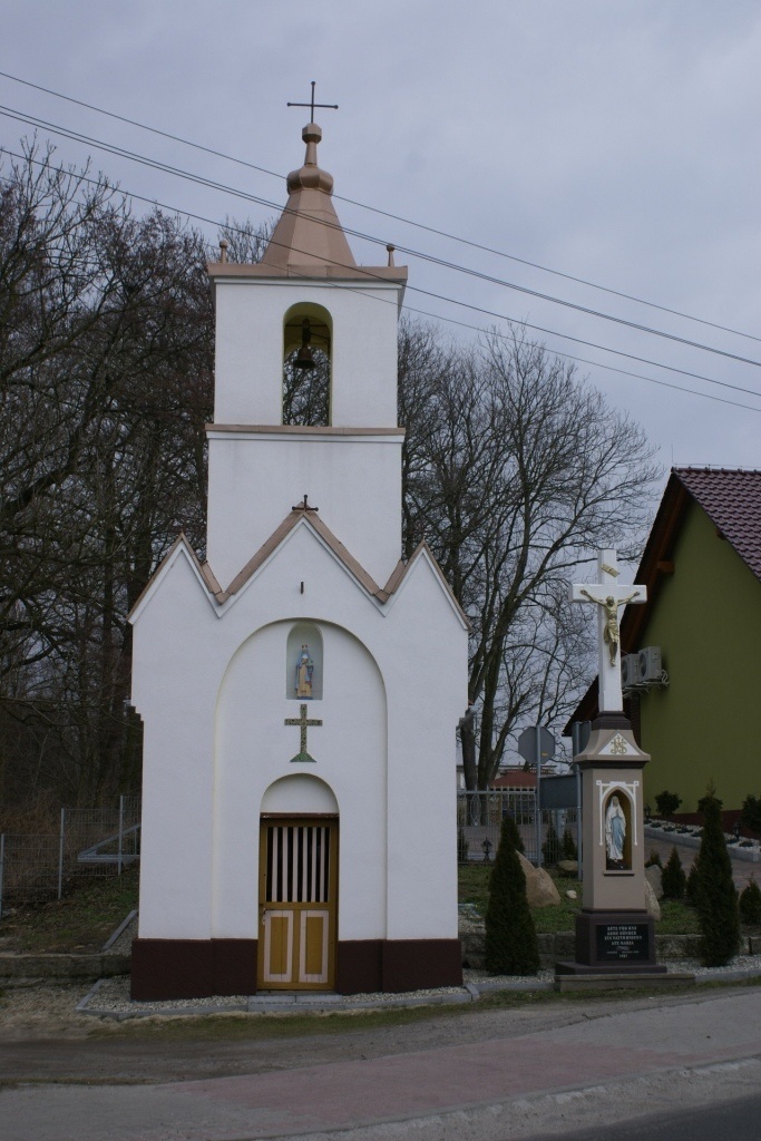 Na początku miejscowości, przy drodze głównej, jadąc od strony Zdzieszowic, znajduje się wzniesiona na planie prostokąta kapliczka wybudowana przez Franciszka Sowę w 1927 r. Nad dwuspadowym dachem wznosi się niewielka wieżyczka z dzwonem. Obok kapliczki usytuowany jest kamienny krzyż z figurą Chrystusa Ukrzyżowanego tego samego fundatora. Nad wejściem do kapliczki oraz postumencie krzyża w niewielkich wnękach umieszczone zostały figurki Maryi.