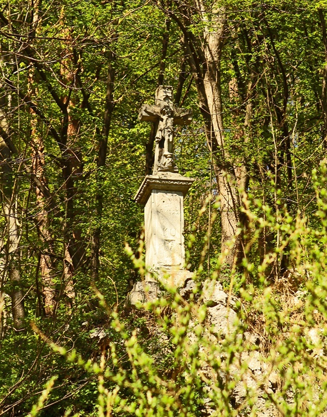 W okolicy zamku w Pieskowej Skale, wśród drzew stoi murowany krzyż z rzeźbą ukrzyżowanego Jezusa Chrystusa wspartego na czaszce ze skrzyżowanymi kośćmi. Krzyż jest widoczny z okolic Maczugi Herkulesa. Można do niego dojść z zamku, kierując się ścieżką na wschód. Na kolumnie krzyża widnieje data 1822.