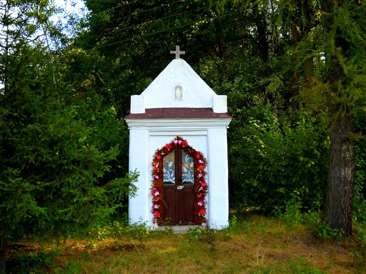 „Szlak małej architektury – żołyńskie kapliczki" wiedzie przez lasy i pola, gdzie wzdłuż dróg, a nieraz i w leśnym gąszczu można spotkać kapliczki, stare i nowe a wszystkie otoczone czcią mieszkańców i bardzo zadbane. Jedną z nich jest murowana kapliczka, stojąca wedle drogi z Żołyni do Białobrzegów. Przy samej drodze rośnie wiekowa sosna, zwana "sosną Sobieskiego", a kapliczka bieleje na skraju lasu, daleko od drogi. Jest bardzo zadbana więc tym bardziej dziwi miejsce gdzie została zbudowana.