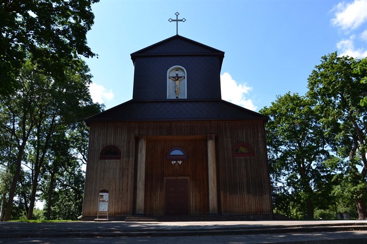 Kościół jest konstrukcji zrębowej wzmocnionej lisicami, z zewnątrz oszalowany z olistwowaniem. Korpus wzniesiony został na planie prostokąta, prezbiterium jest węższe, zamknięte ścianą prostą. Przy nim od południa mieści się prostokątna zakrystia, a od północy kruchta. Od wschodu znajduje się parawanowa fasada z płytkim portykiem wgłębnym ujętym parą kolumn. W środkowej części zlokalizowana jest kruchta główna, po bokach dwa kwadratowe pomieszczenia: od północy kruchta boczna, od południa składzik. Nad nawą i prezbiterium jest dach dwuspadowy, kryty blachą. Na kalenicy, nad prezbiterium, znajduje się czworoboczna wieżyczka na sygnaturkę – ażurowa, obita blachą, zwieńczona sterczyną z krzyżem.