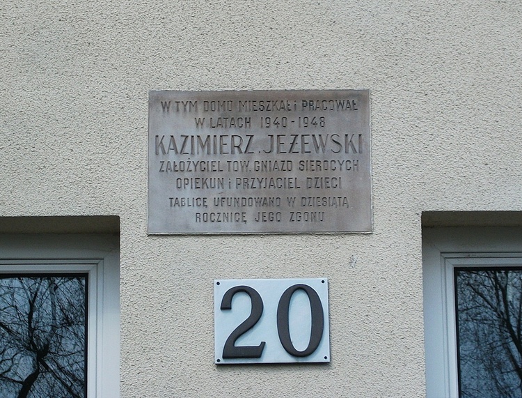 Piaskowcową tablicę na domu, w którym Kazimierz Jeżewski mieszkał w latach 1940-1948, ufundowano w dziesiątą rocznicę jego śmierci.