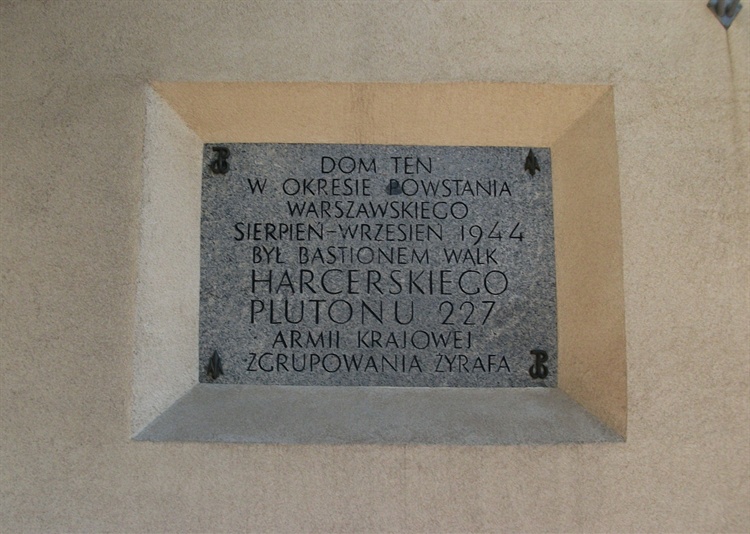 Na Żoliborzu upamiętniono pamięć powstańców z 227 Plutonu Harcerskiego tablicami na domu u zbiegu Alei Wojska Polskiego i ulicy Ks. Jerzego Popiełuszki. Budynek ten stanowił bazę oddziału oraz miejsce wypadowe do kanałów. Jedna z tablic przedstawia drogę wiodącą kanałami, jaką pokonywali harcerze, przemieszczając się z Żoliborza do innych części stolicy.