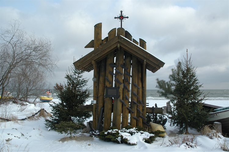 Udając się od słynnego drewnianego mola w kierunku Gdańska napotykamy przystań rybacką, obok której postawiono kapliczkę w intencji szczęśliwego powrotu z połowów. Kapliczka ta frontem skierowana jest ku szumiącym falom morza i kołyszącym się drewnianym łodziom. Ustawiona w niej figura Frasobliwego również jest nietypowa – Chrystus z uniesioną nad czołem dłonią wypatruje rybaków.