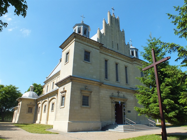 Kościół pochodzi z lat 1950-1967. Wybudowany został z jasnego piaskowca, który wydobywany jest w najbliższej okolicy. Kościół znajduje się przy dawnym trakcie królewskim.