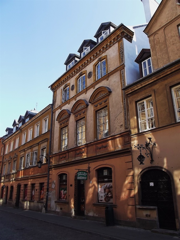 Kamienica dwupiętrowa, trzyosiowa, z neobarokową fasadą. Wzniesiona w połowie XVIII w. W sto lat później nadbudowana o trzecie piętro (obszerna facjata). Pod koniec tego stulecia odnowiono elewację frontową. W 1944 r. częściowo zburzona. Odbudowana w latach 1951-54 pod kierunkiem architektów Stanisławy i Jerzego Dutkiewiczów.