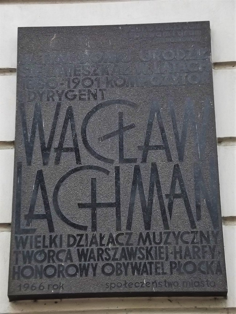 Tablica wmurowana została w fasadę kamienicy przy Placu Obrońców Warszawy 1 w trzecią rocznicę śmierci Wacława Lachmana, tj. w 1966 r. Ufundowana przez mieszkańców miasta, umieszczona została na frontowej ścianie domu, w którym Lachman urodził się i przez wiele lat mieszkał. Projektantem i wykonawcą tablicy był plastyk Stanisław Makuliński.