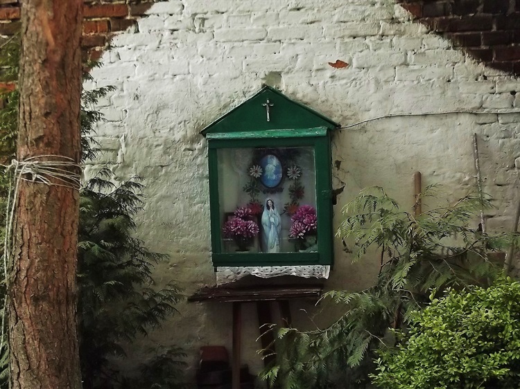 Znajduje się za "zamkniętymi drzwiami", na podwórku posesji przy ul. Ząbkowskiej 16. Jest to drewniana kapliczka skrzynkowa, pomalowana w kolorze ciemnozielonym, za której oszklonymi drzwiczkami umieszczono figurkę Matki Bożej z Lourdes, wprawdzie bez różańca, ale o niespotykanym wyglądzie. Nad nią mieści się medalion ze zdjęciem przedstawiającym młodą Maryję Matkę z Dzieciątkiem Jezus. Z lewej strony jest jeszcze obraz, ale nie widać jego treści, gdyż jest zasłonięty przez zdobiące wnętrze kwiaty. Kapliczka zwieńczona jest trójkątnym, wydłużonym szczytem. Na jego środku znajduje się drewniany krzyżyk z pasyjką.