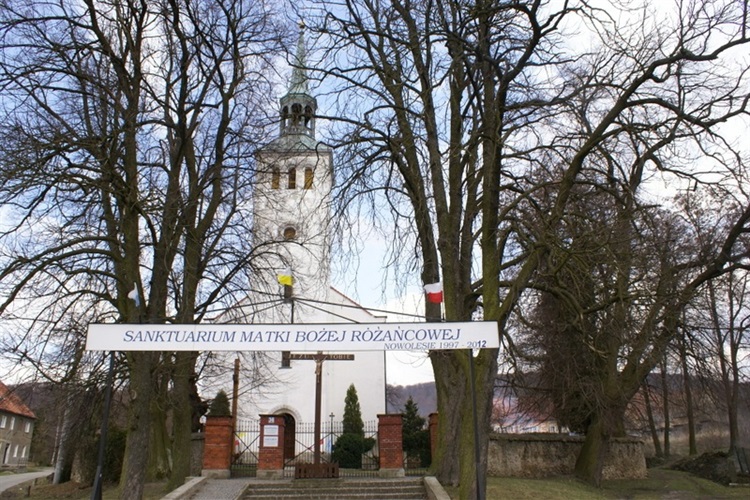 Pierwsze wzmianki o kościele w Nowolesiu pw. św. Marcina pochodzą z XIV w. Obecny murowany kościół został wzniesiony na miejscu poprzedniego w 1867 r., od 1997 uzyskał miano Sanktuarium Matki Bożej Różańcowej. Najcenniejszym wyposażeniem świątyni jest obraz Matki Boskiej Różańcowej. Obraz ten został przywieziony w 1945 r. przez repatriantów z Komorna koło Lwowa. W 1957 r. obraz został intronizowany przez arcybiskupa metropolitę wrocławskiego Bolesława Kominka.