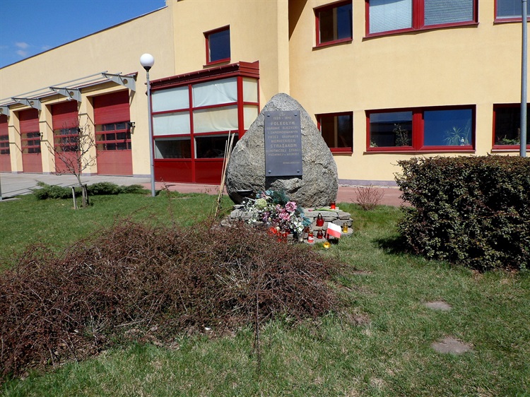 W 1946 r. w ścianę budynku przy ulicy Popularnej wmurowano pamiątkową tablicę poświęconą strażakom, ofiarom II wojny światowej. Podczas przenosin w 2005 r. Państwowej Straży Pożarnej w Warszawie-Włochach do nowych obiektów przy ulicy Ks. J. Chrościckiego 76 zmieniono również lokalizację tablicy. Zamontowano ją na dużym głazie narzutowym przed wejściem do siedziby PSP.