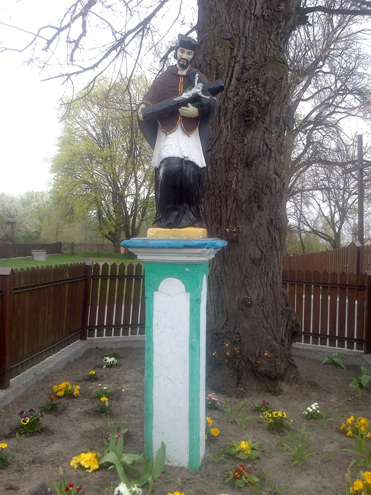 Figura Św Nepomucena w Borowie stoi przed drewnianym kościołem Św Andrzeja. Figurka świętego stoi w cieniu okazałej lipy i jest otoczona drewnianym płotkiem . Postawiono ją tutaj w I połowie XIX wieku .