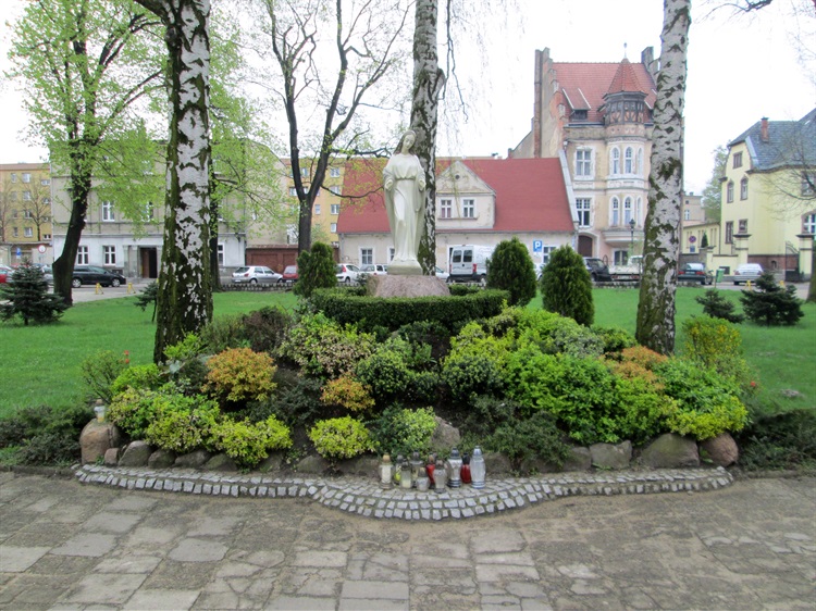 Przy kościele św. Jana Chrzciciela znajduje się piękna figura Matki Boskiej. Umieszczona jest na usypanej skarpie porośniętej roślinami. Całość wkomponowana jest pomiędzy trzema brzozami. Pod figurą zawsze dostrzec możemy znicze zapalane przez parafian oddających cześć Maryi.