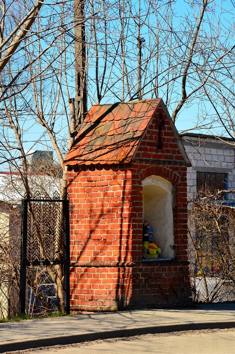 Następna, pochodząca z końca XIX w., to kapliczka przydomowa, znajdująca się w południowej części wioski. Bardzo ciekawa, smukła, z rozbudowanym wysokim korpusem z narożnymi ryzalitami zakończonymi sterczynami i ostrołukowymi ślepymi arkadami. W wieżowym daszku jednokierunkowa dzwonniczka, a w dole korpusu, od frontu, zamknięta nisza z figurką Najświętszego Serca Pana Jezusa. Kapliczka jest znacznie pochylona, ale to jeszcze bardziej przysparza jej uroku.