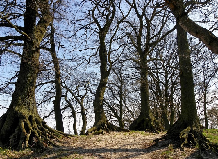 Wiele jest pięknych miejsc w Karsiborze, to jednak zwraca szczególną uwagę. Na niewielkim wzniesieniu niemal pośrodku miejscowości zauważymy niesamowite, trochę dziwaczne drzewa. Wyglądają, jakby wybierały się w drogę…
