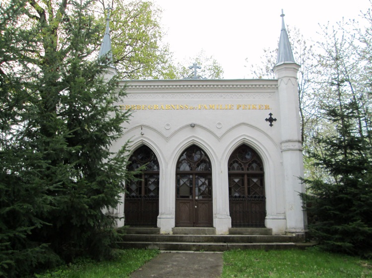 Przy kościele pw. Narodzenia NMP i Jana Apostoła znajduje się dobrze zachowana kaplica grobowa rodziny Peiker, która była właścicielem majątku w Siedlnicy. W ostatnim okresie kaplica została odnowiona i trzeba przyznać, że prezentuje się okazale. Fasadę zdobią dwie wieżyczki umieszczone po bokach. Między nimi dostrzec możemy krzyż umieszczony pośrodku.