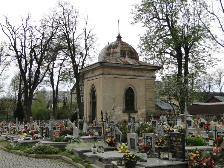 Na cmentarzu przy ul. Majowej są trzy obiekty godne uwagi. Pierwszy to kościół św. Anny, zwany cmentarnym. Drugi to zespół kamiennych kapliczek przypominających kapliczki pokutne. Są to pozostałości Kalwarii z 1630 r., która była przy drodze z Lubomierza do Olesznej Podgórskiej, a tu przeniesiona została w późniejszym czasie. Trzecim cennym zabytkiem jest stylowa klasycyzująca kaplica grobowa Christopha Jakoba Salice-Contessy. Jest to okazała budowla założona na kwadracie, z kopulastym sklepieniem, pokryta hełmem, zbudowana w 1825 r.