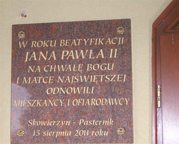W Skowierzynie w przysiółku Pasternik jest kaplica, jak głosi napis, zbudowana przez obywateli Pasternika na chwałę Bogu. Kaplica jest niewielka, murowana w stylu neogotyckim. W ołtarzu umieszczono obraz Matki Boskiej. Kaplica wśród drzew otoczona jest metalowym płotkiem. Na kaplicy umieszczono tablicę z informacją, że została ona odnowiona w roku beatyfikacji Jana Pawła II.
