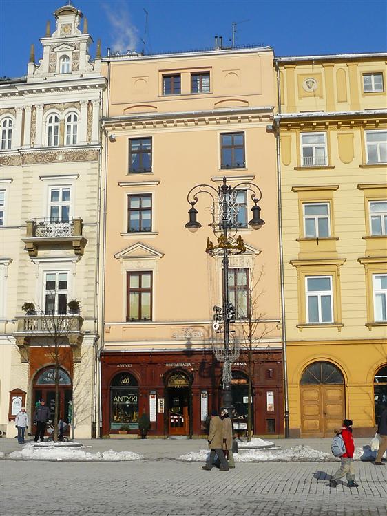 Kamienica powstała w średniowieczu a jej nazwa pochodzi od nazwy mieszczącej się tu apteki. Zabytek ten to prawdopodobnie jedyna przy Rynku kamienica, w której zachowały się ślady przedproża (sklepionej piwnicy dobudowywanej przed wejściem, z tarasem na górze). Wskutek podwyższania poziomu rynku średniowieczne partery kamienic są obecnie ich piwnicami. Granice dawnych przedproży kamienic zaznaczono czerwoną kostką w bruku rynku.
