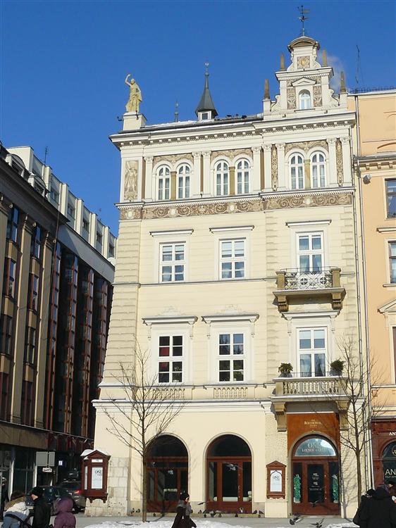 Kamienica narożna u wylotu ul. św. Jana i Rynku. W XVI wieku należała do krakowskiej rodziny Bonerów, którzy zmienili ją w okazałą rezydencję. Niektóre detale z tego okresu zachowały się w pomieszczeniach na parterze (stropy i portale). W XIX wieku inna rodzina – Pareńskich, zleciła przebudowę całego budynku w stylu neorenesansowym. Efekt przebudowy widoczny jest do dzisiaj - zniszczono bezpowrotnie wiele zabytkowych elementów architektonicznych. Mimo to obiekt nadal jest atrakcją architektoniczą miasta. W kamienicy przez wiele lat działał zakład fotograficzny Ignacego Kriegera - dokumentalisty XIX-wiecznego Krakowa.