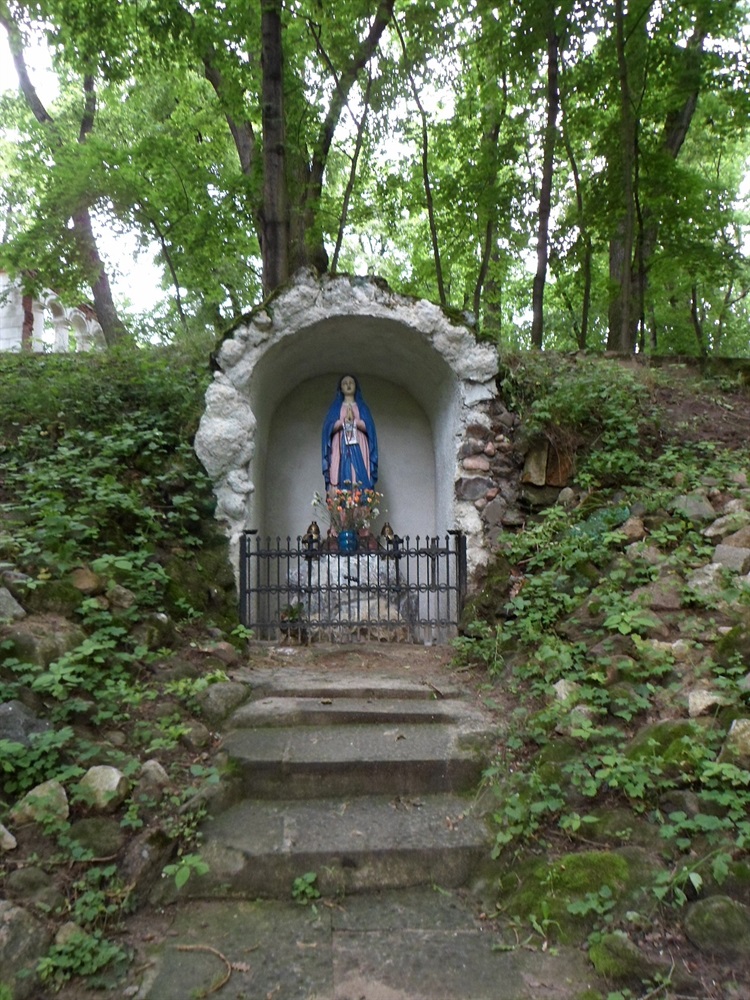 Na północny wschód od centrum Warki rozciąga się założenia pałacowo-parkowe Pułaskich na Winiarach. Jedną z jego części jest obszerny park rozciągający się na skarpie nadpilickiej i jej zboczach. Obfitujący w piękny drzewostan kryje kilka niespodzianek. Jedną z nich jest kapliczka z figurą Matki Boskiej.