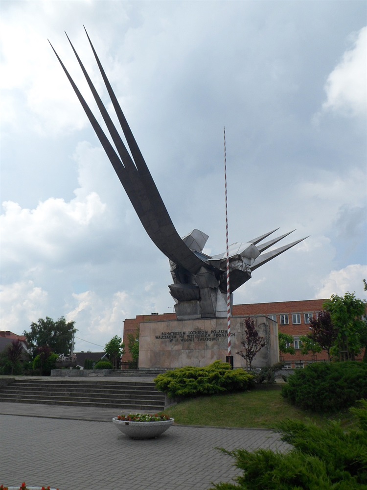 Przy dzisiejszym rondzie Jana Pawła II wznosi się monumentalny pomnik nazywany popularnie od swojej formy widelcem. Obelisk poświęcony jest polskim lotnikom walczącym na wszystkich frontach II wojny światowej. Autorem projektu był rzeźbiarz Rajmund Gruszczyński, a wykonawcą firma „Chemomontaż” z Pionek. Na monument składają się wykonany z kwasoodpornej blachy stylizowany samolot oraz duży postument z okolicznościowym napisem i płaskorzeźbami. Pomnik wzniesiono na niewielkim sztucznym wzniesieniu.
