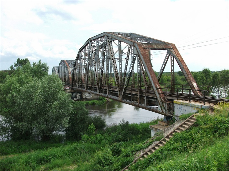 W trakcie jej powstawania, które pochłonęło 35 milionów przedwojennych złotych, konieczne stało się zbudowanie przeprawy nad Pilicą w Warce. W 1934 r. ukończono budowę mostu kolejowego nad Pilicą. Trójprzęsłową, kratownicową konstrukcją poprowadzono jeden tor. Podpory mostu przygotowane zostały na dwa ciągi komunikacyjne, jednak drugiego nie udało się oddać do dziś. Między innymi z tego powodu odcinek łączący Warkę z Radomiem jest linią jednotorową.