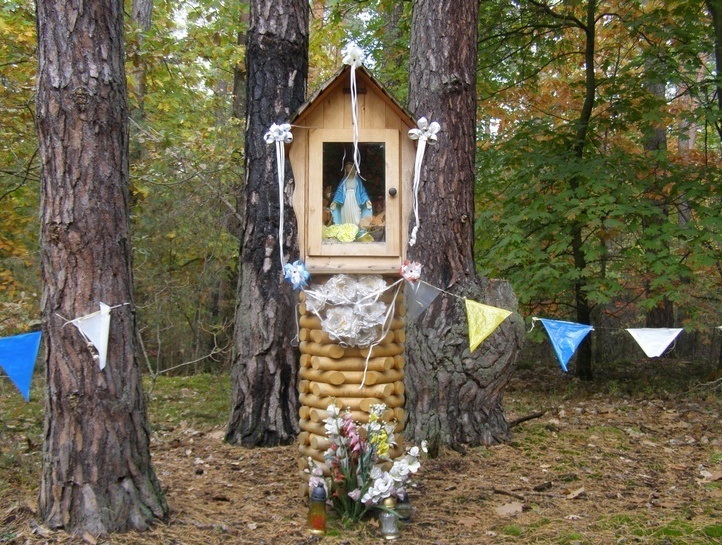 W lesie dawnego poligonu wojskowego nie tylko wojsko strzelało. Zdarzyło się to w latach 80. XX wieku, że do patrolującego las leśniczego strzelał kłusownik. Sprawcy nie znaleziono, leśniczemu nic się nie stało. W miejscu zdarzenia wystawił dziękczynną kapliczkę jako wotum dziękczynne Matce Boskiej, kapliczkę tę ktoś podpalił. Pan leśniczy wybudował nową, troszkę bardziej okazałą.