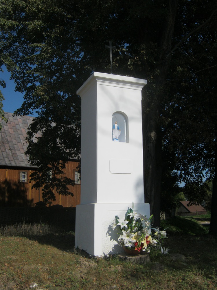 Kapliczka Matki Boskiej znajduje się w niedalekiej odległości kościoła pw. Św. Jana Chrzciciela. Jest to słupowa, murowana kapliczka pomalowana na biało, zwieńczona metalowym krzyżem. W niej znajduje się mała przeszklona wnęka z figurką Matki Boskiej.