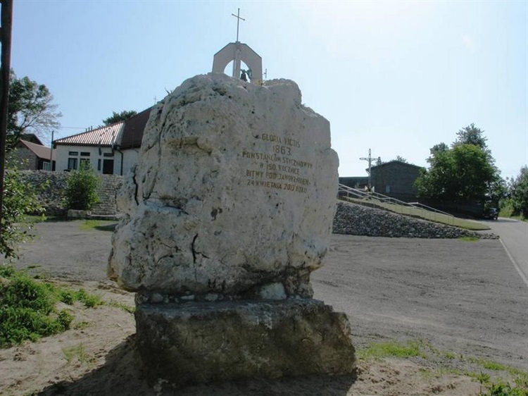 Na kamieniu umieszczono napis: „Gloria Victis 1863 – Powstańcom Styczniowym w 150. Rocznicę Bitwy pod Jaworznikiem 24 kwietnia 2013 roku”. Potyczka stoczona tego dnia pomiędzy powstańcami kpt. Anastazego Mossakowskiego a siłami Imperium Rosyjskiego, przeszła do historii jako jedna z najkrwawszych. Oddział powstańczy od dłuższego czasu nękany przez Rosjan, został zaskoczony koło Jaworznika przez piechotę płk. Alenicza i po rozpaczliwej obronie rozbity. Zginęło wówczas 43 powstańców, znaczna liczba odniosła rany, dużo trafiło do niewoli. Z pola bitwy zbiegło ok. 70 ludzi. Rosjanie stracili 40-60 żołnierzy.