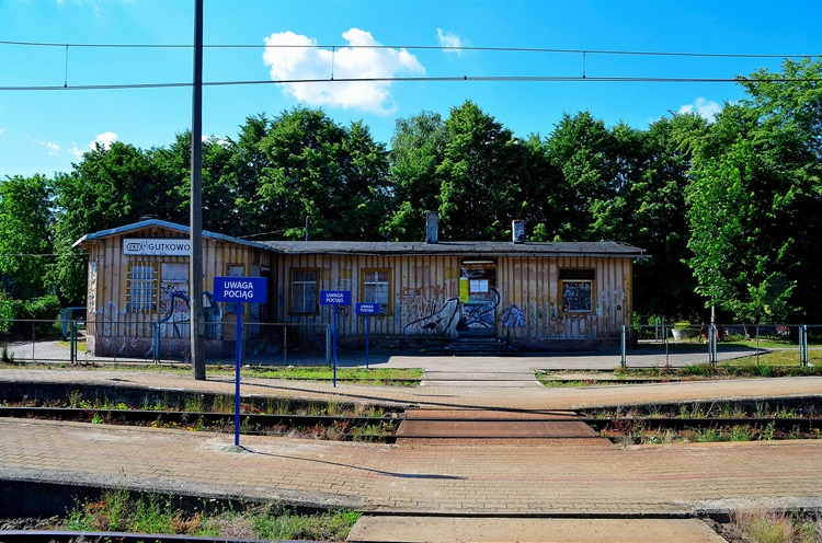 Stacja Gutkowo posiada nadal 4 tory główne, z których jednak tylko 3 są użytkowane. Z dawnej zabudowy stacyjnej pozostał budynek dworcowy i dom mieszkalny spełniający kiedyś funkcje noclegowni dla kolejarzy. Niewielki, drewniany i parterowy budynek dworcowy niegdyś spełniał rolę poczekalni z kasą biletową. Niestety obecnie jest zamknięty i niszczeje.