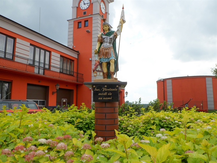 Przed 100-leciem OSP remiza przy rynku została gruntownie przebudowana i wyremontowana. Przed budynkiem ustawiono kapliczkę z figurą patrona strażaków św. Floriana oraz dawną, konną sikawkę. Nad starówką góruje wieża z zegarami.