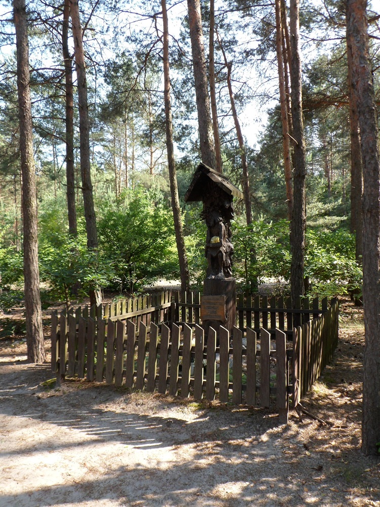 Wspomniani rowerzyści, których często można spotkać na szlakach Mazowieckiego Parku Krajobrazowego, ufundowali niezwykłą kapliczkę, która stoi przy leśnej drodze prowadzącej z Karczewa do Anielina. Kapliczka z figurą Chrystusa Frasobliwego wykonana została z drewna przez rzeźbiarza Stefana Lisowskiego z Góry Kalwarii. Na urokliwym obiekcie, nazywanym kapliczką leśnych rowerzystów, umieszczono tabliczkę z mottem: „W nim żyjemy, poruszamy się i jesteśmy – leśni rowerzyści”. Przed kapliczką znajdują się ławki zachęcające do chwili odpoczynku i zadumy.