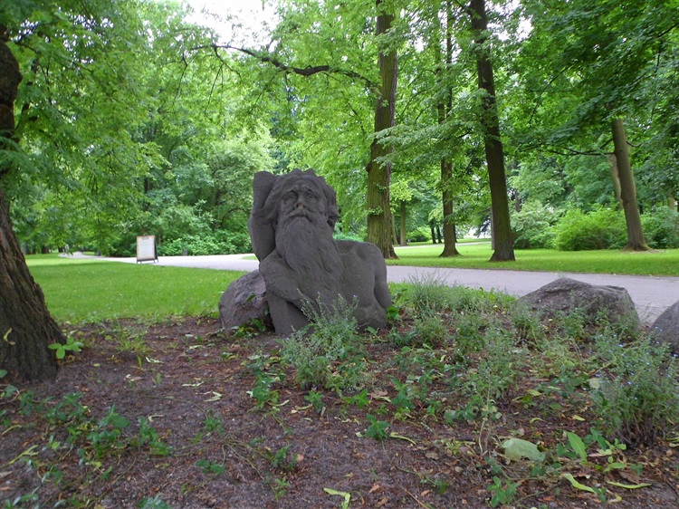 W pałacowych magazynach zachowała się gipsowa próba przyszłej rzeźby, ale przypomina ona bardziej boga mórz Neptuna. Na jej podstawie wykonano kamienne popiersie. Kamienna rzeźba Neptuna znalazła miejsce przy ścieżce prowadzącej na most nad kaskadą. Ustawiona wśród roślin i kilku głazów narzutowych pozostaje przez wiele osób niezauważona. A warto zwrócić na nią uwagę choćby ze względu na rzeźbiarską technikę i modę panującą w XVIII wieku.