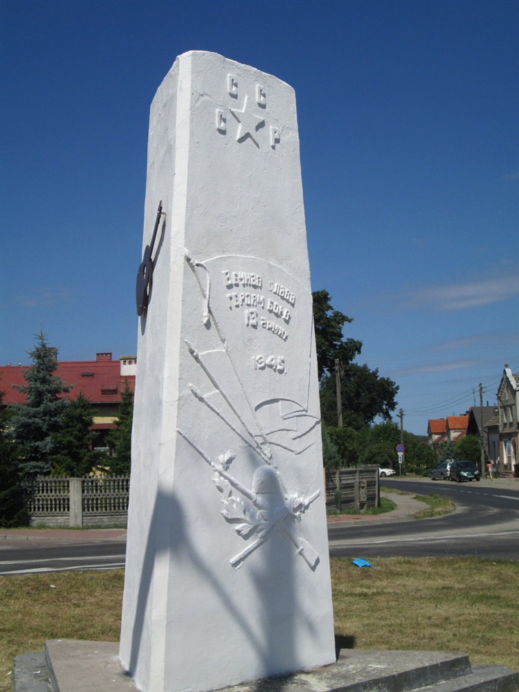 Przy wjeździe do Ścinawy od strony Rawicza znajduje się pamiątkowy obelisk. Jest to trzystronny biały monument. Główna strona upamiętnia żołnierzy Armii Radzieckiej walczących o wyzwolenie tych ziem. Dwie pozostałe są już bardziej współczesne.