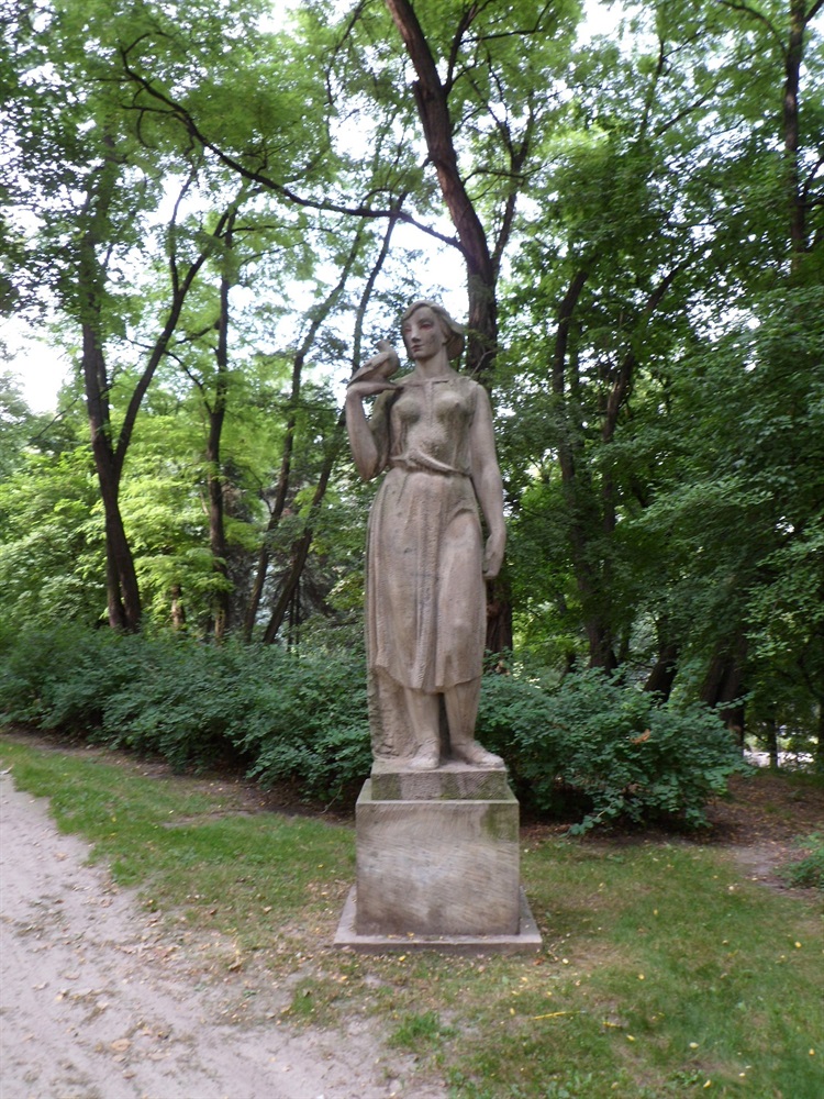 Jedną z rzeźb reprezentujących ducha socrealizmu możemy zobaczyć w Parku im. marszałka E. Rydza-Śmigłego. Przedstawia ona dziewczynę z gołębiem na ręku. Autorem rzeźby był Franciszek Habdas związany w latach pięćdziesiątych z nurtem wspomnianego socrealizmu. Trzymetrowa figura z piaskowca ozdobiła w 1957 r. jedną z alejek tworzonego w latach 1952-1964 Centralnego Parku Kultury i Wypoczynku na Powiślu.