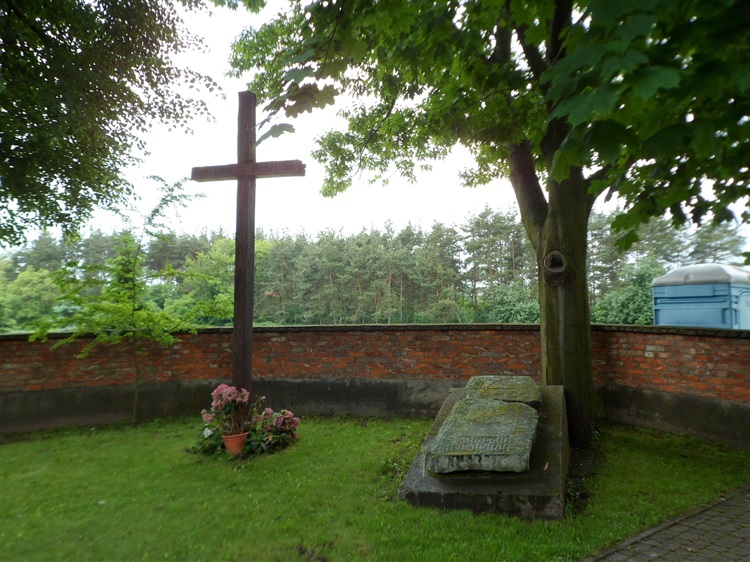 Do dziś zachowała się duża płyta nagrobna z XVI w. Znaczyła ona miejsce spoczynku kanonika warszawskiego Bartłomieja z Belska Starego. Na płycie widnieją herby i rok śmierci kanonika (1527) oraz mało czytelna gotycka inskrypcja. Piaskowcowe epitafium wyeksponowano w pobliżu krzyża misyjnego.