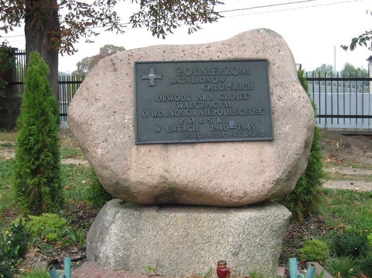 Na placu kościelnym w Grójcu w niewielkiej odległości od pomnika Piotra Skargi znajduje się kamienny obelisk z pamiątkową tablicą. Z jej treści można się dowiedzieć, że został ufundowany przez społeczeństwo powiatu grójeckiego. Upamiętnia żołnierzy Batalionów Chłopskich obwodu nr 8 w Grójcu, którzy oddali swe życie w walce o wolność i niepodległość Polski w latach 1940-1945.