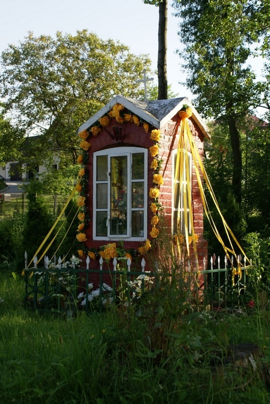 Kapliczka słupowa zbudowana z czerwonej cegły i przykryta wielospadowym daszkiem zwieńczonym metalowym krzyżykiem wzniesiona została w XX wieku. Wewnątrz oszklonej kapliczki umieszczone zostały figury Matki Boskiej oraz przedstawiające scenę chrztu Jezusa przez Jana Chrzciciela. Kapliczka otoczona jest niskim metalowym ozdobnym ogrodzeniem. Dodatkowo z zewnątrz ozdobiona jest sztucznymi kwiatami oraz wstążkami. Kapliczka usytuowana jest w centrum wsi nad rzeczką Strugą.