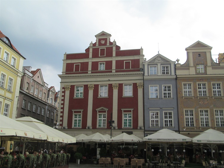 Kamienica Czerwona znajduje się przy Starym Rynku nr 37. Nazwę swą zawdzięcza kolorowi elewacji. Spośród innych kamienic wyróżnia się szerokością jaką uzyskała w XVI wieku kosztem sąsiedniej posesji. Przebudowana w latach 1652-1654. W roku 1880 została przemalowana i od tego momentu nazywana jest „czerwoną”. Kamienica posiada wczesnobarokowa fasadę z czterema reliktami kroksztynów. Od XVI wieku, aż do roku 1945 znajdowała się w niej apteka. Obecnie swoją siedzibę ma tam Dom Bretanii.