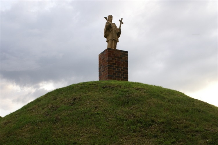 Na szczycie kopca nad rzeczką Mesznik na prostym murowanym z cegły cokole stoi figura św. Jana Nepomucena. Święty przedstawiony jest w szatach kapłańskich a w rękach trzyma krzyż i palmę. Niestety jest to nieciekawa współczesna figura.