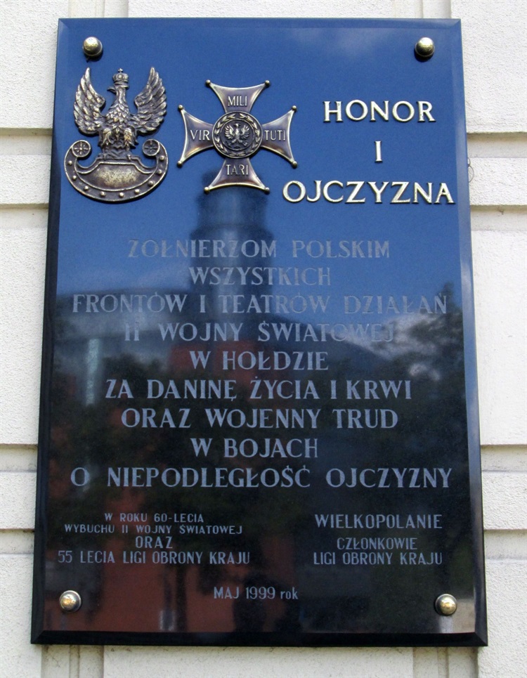 Na elewacji budynku „Domu Żołnierza” znajduje się tablica pamiątkowa poświęcona żołnierzom walczącym na frontach II wojny światowej. Ufundowana została w maju 1999 roku przez Wielkopolan - członków Ligi Obrony Kraju. W jej górnej części znajduje się orzeł noszony na czapkach wojskowych , krzyż Virtuti Militari oraz napis „Honor i Ojczyzna”. Dalej umieszczono napis następującej treści: „Żołnierzom polskim wszystkich frontów i teatrów działań II wojny światowej, w hołdzie za daninę życia i krwi oraz wojenny trud w bojach o niepodległość Ojczyzny”.
