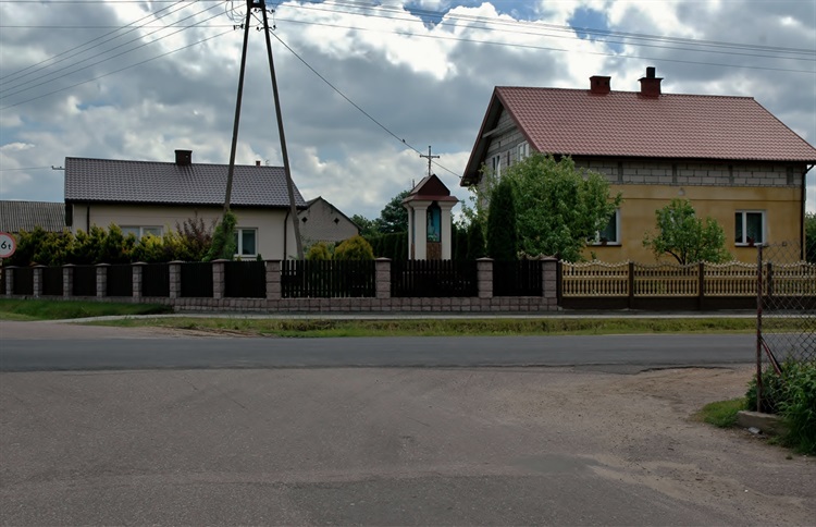 Jadąc trasą nr 7 z Warszawy, w miejscowości Wiśniewo skręcamy w lewo i kierujemy się, jadąc drogą lokalną, do miejscowości Podkrajewo. Dojeżdżamy do skrzyżowania z drogą powiatową Mława - Sierpc i po lewej stronie widzimy pięknie zadbaną kapliczkę w kształcie u podstawy kwadratu wykonaną z betonu, pokrytą zadaszeniem koloru czerwonego, nad którym wznosi się metalowy krzyż. W środkowej części umieszczona jest figura Matki Boskiej widoczna za oszkleniem z czterech stron świata. Widać, że kapliczka jest objęta szczególną opieką mieszkańcow; obok sporządzono ogródek, ławę wraz z siedzeniami.