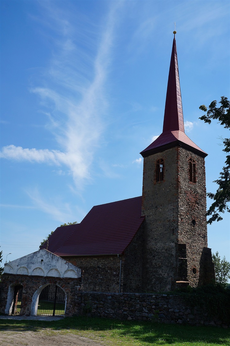 Jednonawowa budowla z kamienia polnego i cegły została wzniesiona u schyłku XIII w. Otacza ją mur z epoki w tej samej technice przez który prowadzi barokowa brama z XVI w.