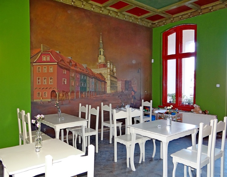 Ta piękna nazwa doskonale pasuje do charakteru lokalu o wyraźnie „mieszkalnym” charakterze. Widać, że zaprojektowano go z dużą dozą uczucia do książek i starych sprzętów. Lubiącym czytać spodoba się już wąski, wytapetowany starymi gazetami korytarz i stojące w nim, wypełnione księgozbiorem biblioteczki. Dalej jest jeszcze fajniej. Wysokie pokoje z ozdobnymi sufitami i wielkimi oknami, na jednej ze ścian bajkowy pejzaż poznański ze skrzatem w tle. Naprzeciw niej bar z bardzo miłą obsługą. Przy sporym balkonie dobrze wyposażony kącik dziecięcy z własnoręcznie przez nie malowanymi stolikami a do tego wszystkiego podest zamieniający się niekiedy w scenę, na której co jakiś czas rozgrywają się Baśnie Właśnie.