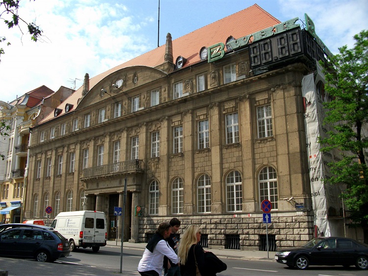 Wspomniany budynek powstał w latach 1910-1911 dla Banku Wschodniego (niem. Ostbank für Handel und Gewerbe). Gmach zaprojektował Hans Uhl, ale jeszcze w trakcie realizacji poddany został zmianom według koncepcji architektów Richarda Bielenberga i Josefa Mosera. Przysadzista bryła banku jest typowym przykładem niemieckiej architektury tamtych czasów czerpiącej wzory z budownictwa barokowego. Dwupiętrowy, trzynastoosiowy budynek ozdobiły detale art-deco zwiastujące nadejście nowego stylu.
