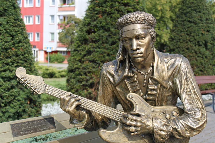 Umiejscowienie mosiężnego posągu Jimiego Hendrixa na placu przed Pałacem Kultury Zagłębia nie jest przypadkowe. Nawiązuje bowiem do wydarzeń z 1990 roku, kiedy to młodzi mieszkańcy zagłębiowskich miast stanęli w obronie pomnika przeznaczonego do wyburzenia. Na cokole pomnika pojawił się wówczas napis “Jimiemu Hendrixowi. Kurtowi Cobainowi. Make love not war. War is over. Wszystkim, którzy kochają wolność.” Ten sam napis widnieje na ławeczce obok pomnika.