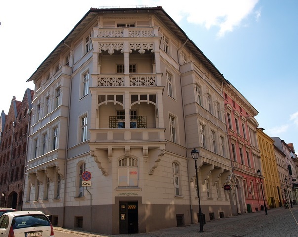 Toruńska Starówka na każdym naszym kroku urzeka nas swoją piękną architekturą. Kamienice mieszczańskie, barokowe, manierystyczne, renesansowe - każdy znajdzie swój ulubiony styl. Większość z nich ma swoją historię, ale są i takie, które kiedyś powstały i po prostu są. Przy ul. Mostowej 9 znajduje się kamienica wzniesiona w XIX w. w stylu eklektycznym. Jest budynkiem dość charakterystycznym, ponieważ narożnym. Każdemu zapewne rzuci się w oczy wspaniały balkon i wykusze.