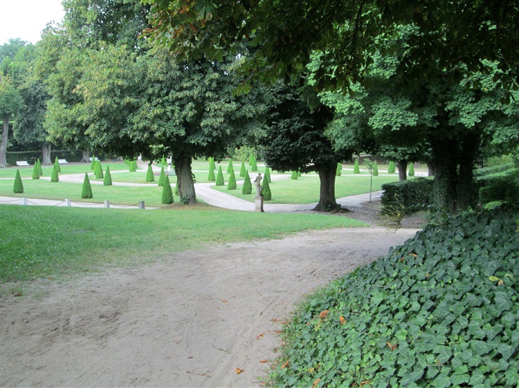 Ogród francuski powstał równocześnie z pałacem w II połowie XVIII wieku. W jego zachodniej części znajduje się sztuczne wzniesienie zwane parnasem, pełniące rolę kopca widokowego. Podczas II wojny światowej teren między pałacem, a parnasem został zniszczony. Zrekonstruowany po przejęciu zespołu pałacowego przez muzeum.