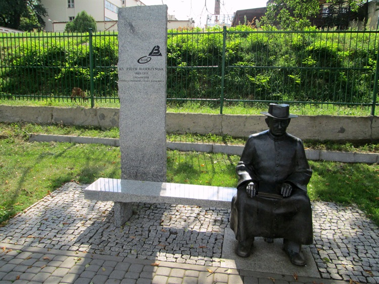 Pomnik - ławeczka ks. Piotra Wawrzyniaka znajduje się na nadwarciańskiej promenadzie. Jej uroczyste odsłonięcie miało miejsce dnia 15 listopada 2010 roku. Autorem pomnika jest rzeźbiarz Krzysztof Jakubik. Monument przedstawia siedzącego księdza w kapeluszu, z książką na kolanach. Obok umieszczono tablicę z napisem następującej treści: „Ks. Piotr Wawrzyniak, 1849-1910, Organicznik, Twórca spółdzielczości bankowej”.