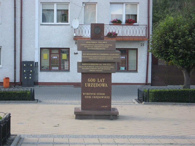 Na rynku w Urzędowie znajduje się pomnik upamiętniający najwybitniejszych mieszkańców tej miejscowości, a niegdyś miasteczka. Leona Ulricha (1818-1885) - dramaturga i tłumacza dzieł szekspirowski na język polski i uczestnika powstania listopadowego. Jana Michałowicza z Urzędowa (1530-1583) wybitnego rzeźbiarza i architekta polskiego renesansu. Marcina z Urzędowa (ok. 1500-1573) autor dzieła "Herbarz Polski" z dziedziny botaniki lekarskiej,lekarza i kapłana. Został odsłonięty w 2005 roku z okazji 600 - lecia Urzędowa.